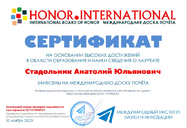 МЕЖДУНАРОДНАЯ ДОСКА ПОЧЁТА HONOR.INTERNATIONAL